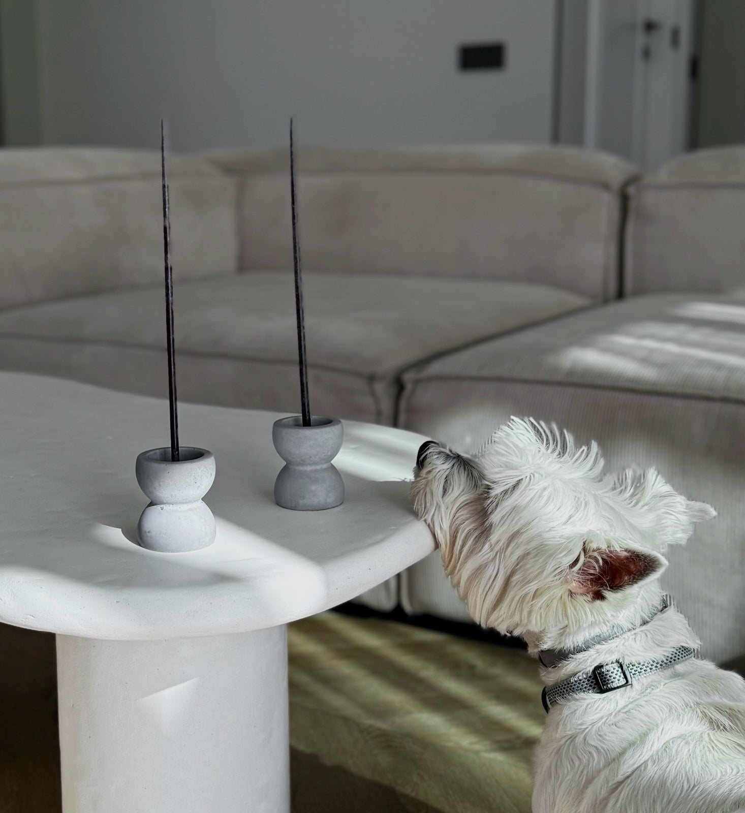 ši rankų darbo betoninė žvakidė sukurta galvojant apie universalumą ir estetiką. dėl trijų aukštų vidinės ertmės ji tinka įvairių tipų žvakėms: nuo plonų 6mm skersmens žvakių, klasikinių aukštų žvakių iki arbatinių žvakučių. tvirtas betonas užtikrina stabilumą, o minimalistinis dizainas puikiai dera tiek moderniame, tiek klasikiniame interjere.